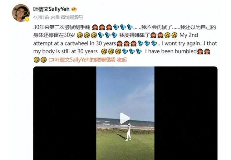 话虽这么说,但视频中的她还是轻松拿下了侧手翻。
