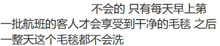 更有自称内部员工的网友爆料,这些毛毯的清洗频率远低于公众想象,除了清晨的第一个航班,后续航班的毛毯大多未经洗涤就循环使用。