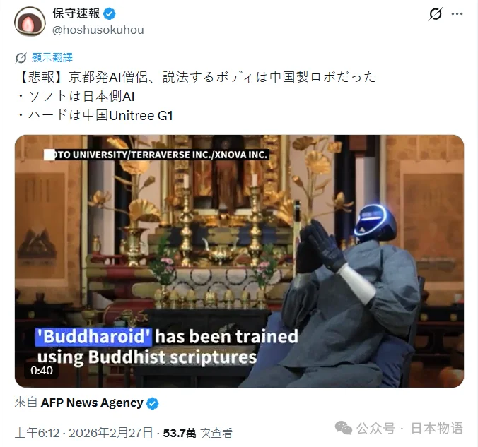 与此同时,日本在生成式 AI 领域并未出现具有全球影响力的基础模型产品。本土团队可以做应用开发与场景设计,但底层模型生态仍然依赖国际体系。这种结构在“佛陀机器人”身上体现得非常清晰:应用在日本,身体在中国,模型在美国。