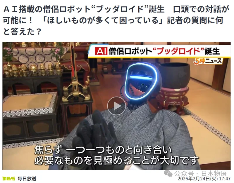 2月24日,日本京都大学研究团队宣布推出一款名为“佛陀机器人”的人形机器人。它搭载生成式AI,学习佛教经典,可以用较为自然的语言与人对话,甚至模仿僧侣的合掌与礼拜动作。日本媒体很兴奋——这是日本传统文化与人工智能结合的一次尝试。