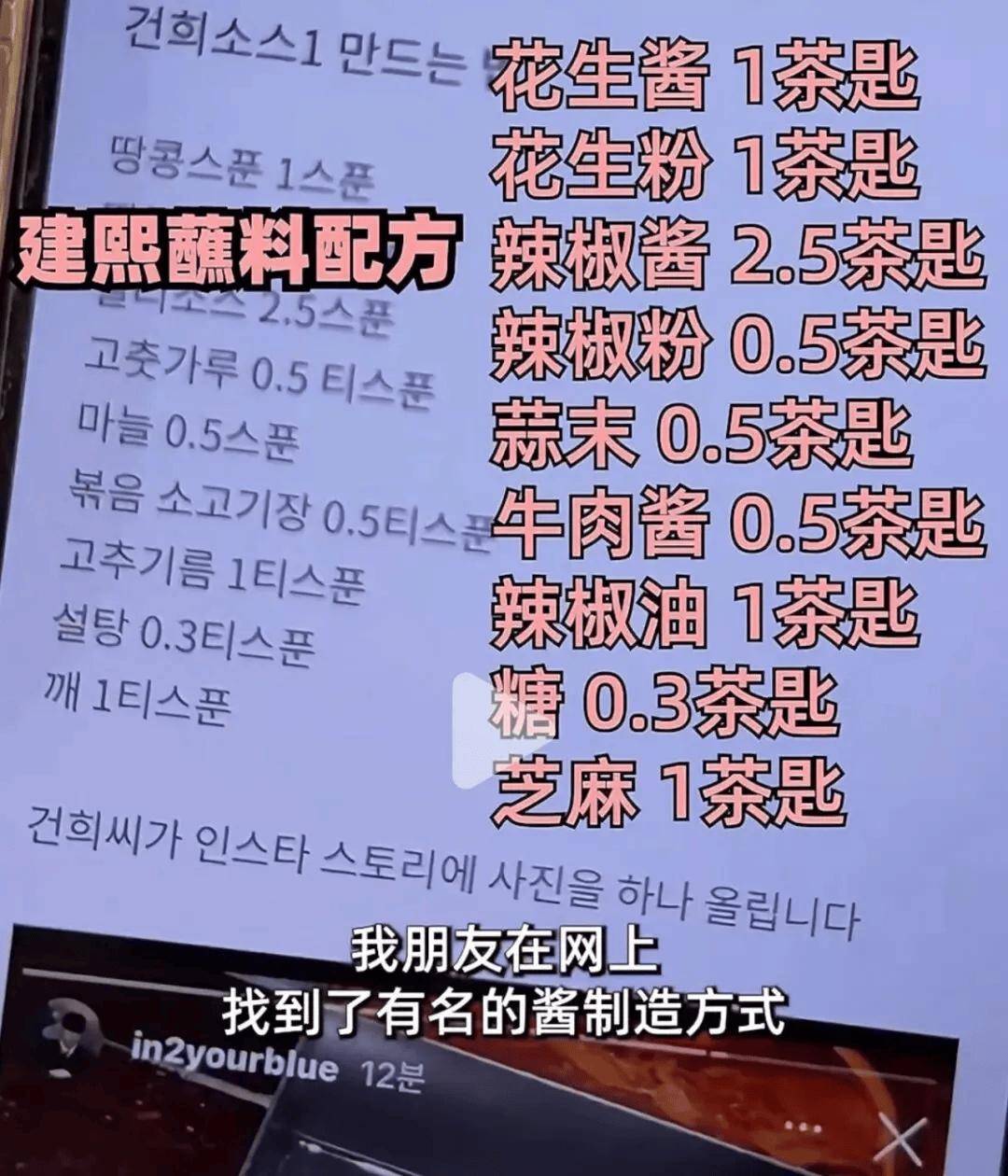 而且,这届韩国年轻人也把调料台玩成了过家家。早几年,男团成员建熙发明的“建熙酱料”在韩网已经成了类似国家标准的存在,就在2025年,还更新了修正版配方,很多第一次吃海底捞的韩国人,都会盯着这个配方,小心翼翼地按克数复刻,生怕少放了一勺辣椒油,错失了那口被全网封神的味道。