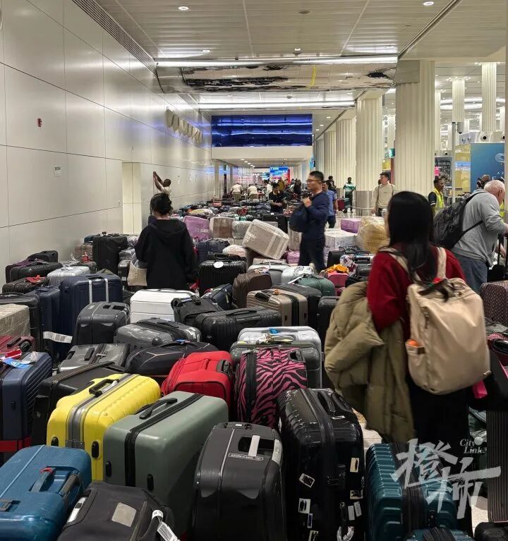 机场充满转机滞留的行李 受访者供图