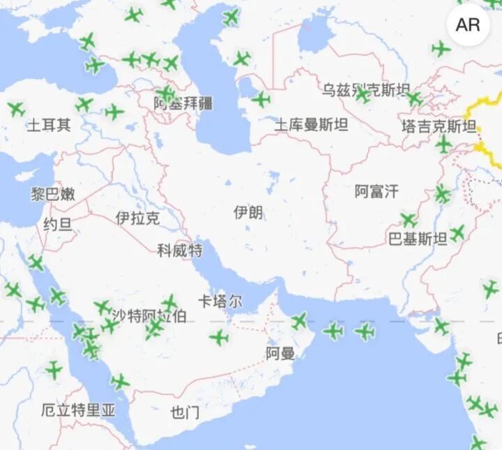 埃里温-迪拜这一程,全程经过了伊朗领空。