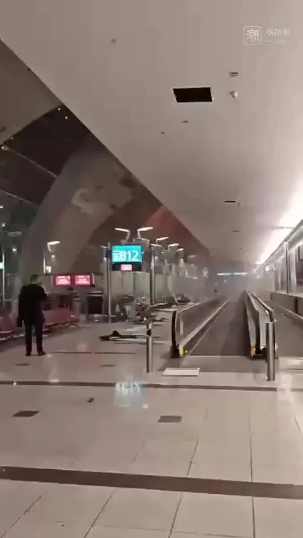 (迪拜机场航站楼被导弹碎片波及 视频由受访者提供)