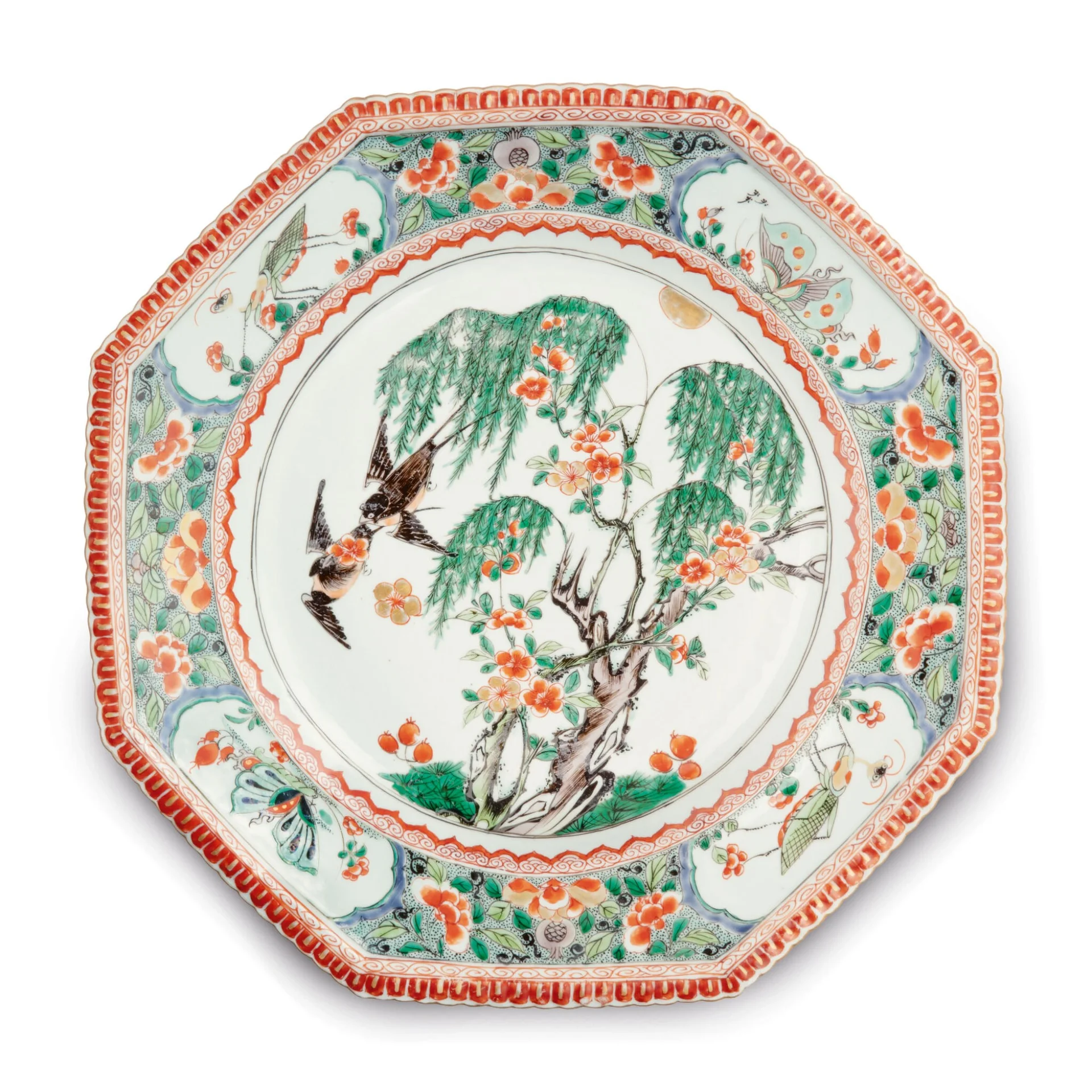 类似的盘子,Sotheby's 也卖过。https://www.sothebys.com/en/buy/auction/2019/selected-meissen-and-other-ceramics-from-the-collection-of-henry-h-arnhold/a-chinese-famille-verte-octagonal-dish-qing