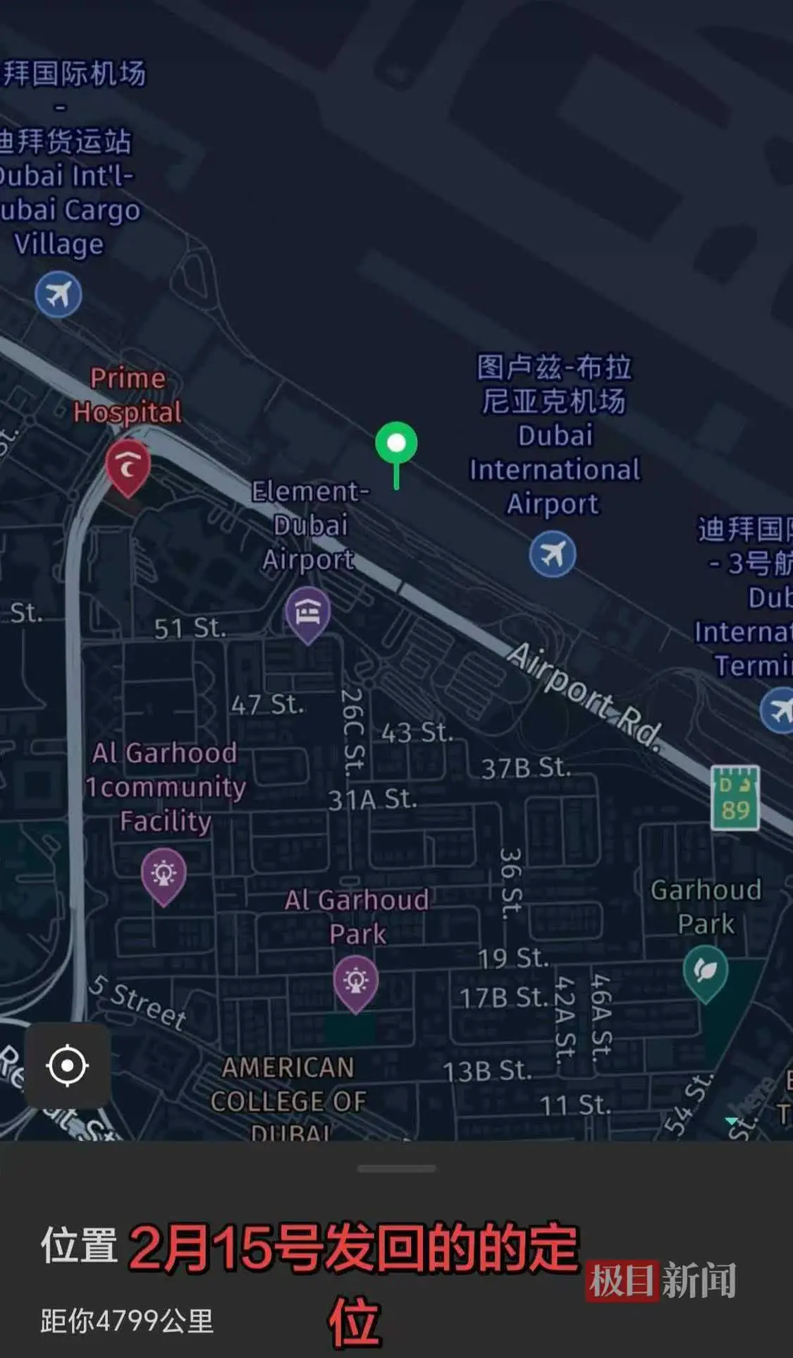 “本来人已经失联,如今又碰上战争爆发,寻找就更麻烦了。”2日下午,上述寻人信息发布者赵女士焦急地告诉极目新闻记者,刘瑜是她老公,2月11日自重庆到广州白云机场,次日从白云机场出发到达阿联酋迪拜。2月15日,丈夫发回来的手机定位是在阿布扎比地区,2月19日(大年初三)凌晨3时许发信息称21日回家,因为她的父亲去年离世,此前和老公说好了一起去上坟。19日晚她发短信老公未回,20日就打不通电话了,至今已失联了11天。