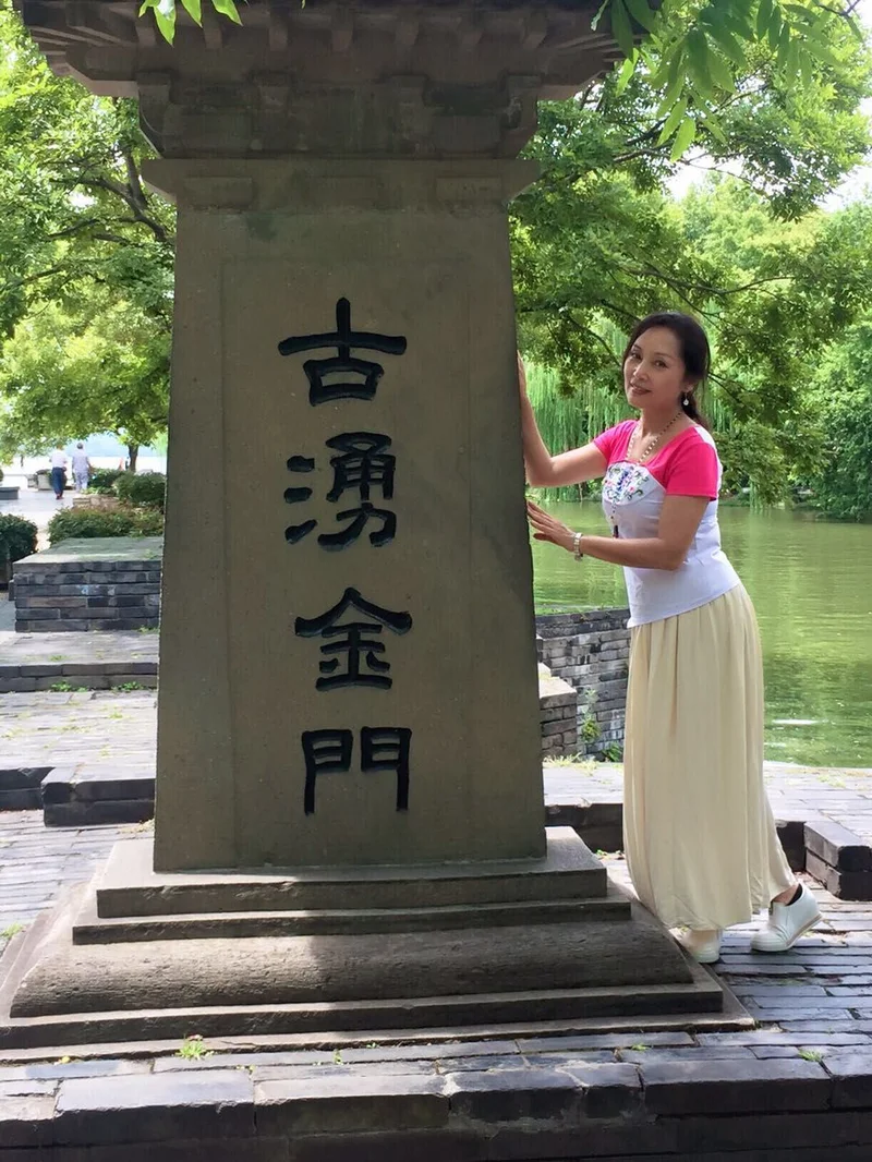 2017年芊芊随剧团游杭州,在古涌金门留影,给我发来真相图:“随剧团游西湖,到了立兄老家门口。”