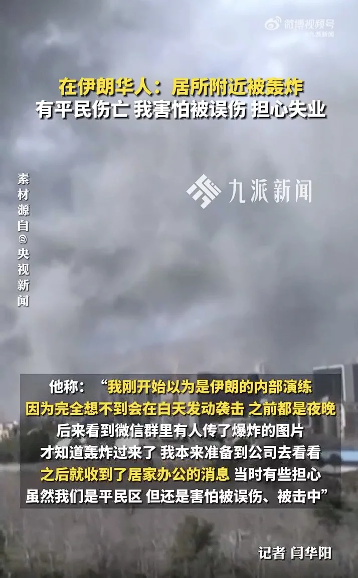 他称:“我刚开始以为是伊朗的内部演练,因为完全想不到会在白天发动袭击,之前都是夜晚。后来看到微信群里有人传了爆炸的图片,才知道轰炸过来了。我本来准备到公司去看看,之后就收到了居家办公的消息。当时有些担心,虽然我们是平民区,但还是害怕被误伤、被击中。”他表示:“相比爆炸,更让人难受的是没有网络。我们很担心失去联络,心里有一种无形的恐慌,内部之间只能靠打电话、发短信来联系。”