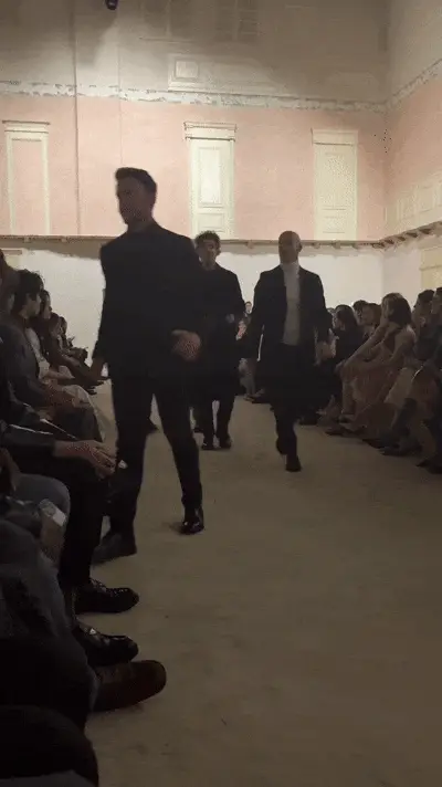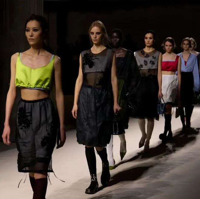 这场秀本身也很能打,缪姨和Raf Simons这次只用了15位模特,却呈现了60个look。每位模特走4次T台,通过层层叠穿和拆解展示不同look,被媒体评价为“近年来最有形式感的系列之一”。