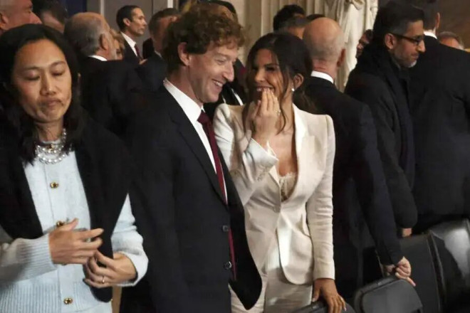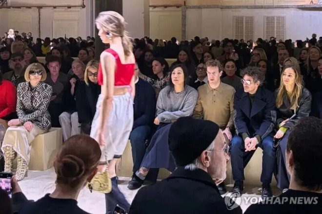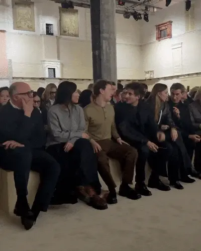 看秀时,扎克伯格换上笔直坐姿,比上听证会还认真。更逗的是普利希拉还给老公讲解T台上的叠穿细节,像极了“老婆带老公逛街买衣服”,两人脚上还穿了同款情侣Prada乐福鞋。