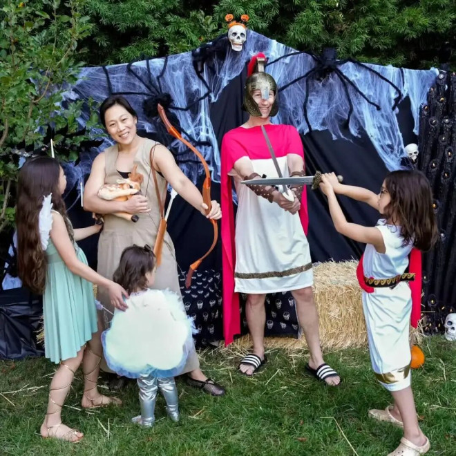 万圣节这种节日,小扎也是绝对不能错过的,Cos成斯巴达战士,和老婆孩子们其乐融融,很会提供情绪价值。