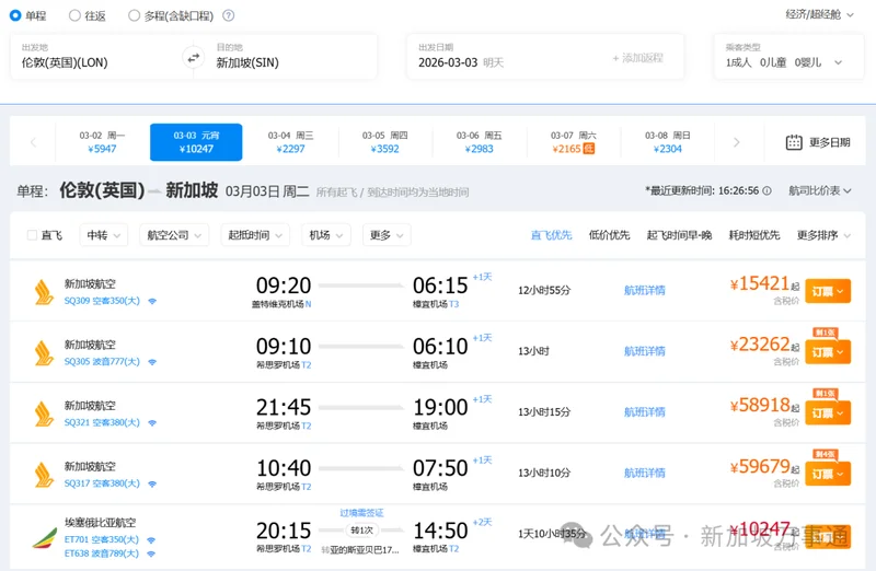 4回新加坡机票一票难求