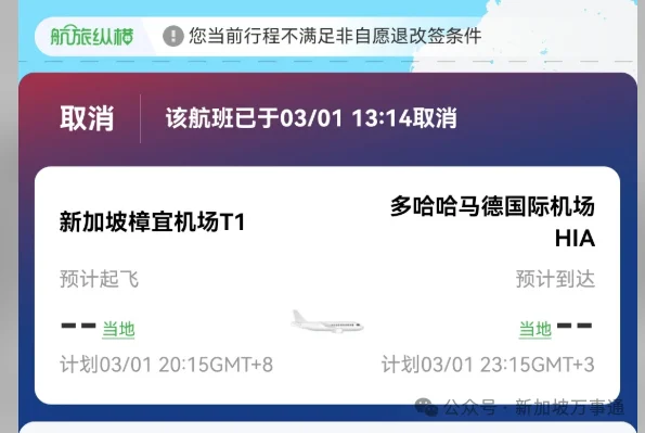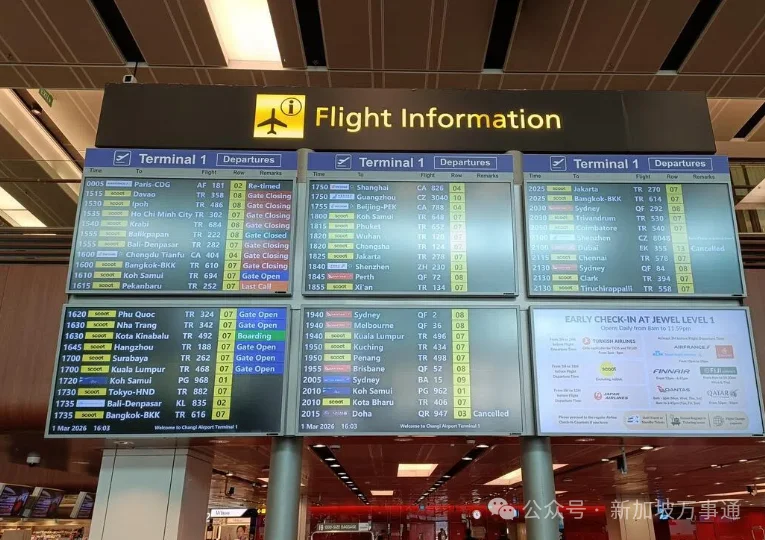 受中东紧张局势影响,从2月28日起,新加坡部分往返中东的航班被取消,包括:新加坡航空、酷航、卡塔尔航空、阿联酋航空、阿提哈德航空、马来西亚航空…