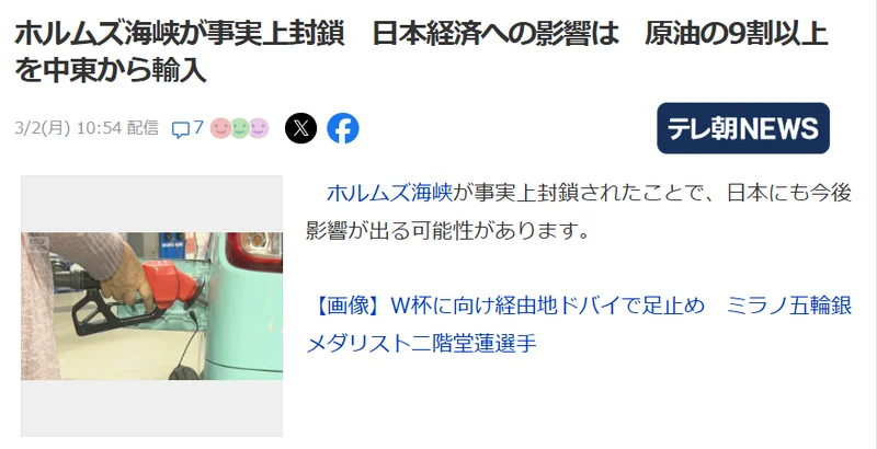 对于美国和以色列开始对伊朗发动的大规模攻击,日本政府担忧事态长期化。这是因为原油价格高涨可能带来能源价格上涨和物价上涨,从而加重国民生活负担,并担心出现原油供应中断。
