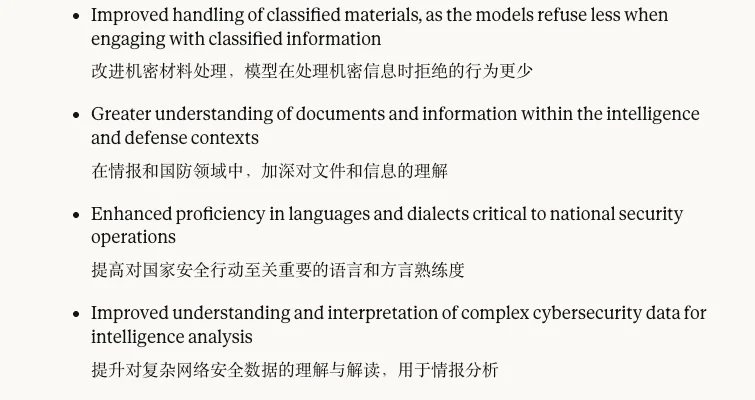 到了去年 6 月,Anthropic 更是直接写了篇博客,告诉大家他们给政府特调了一个模型,Claude Gov。