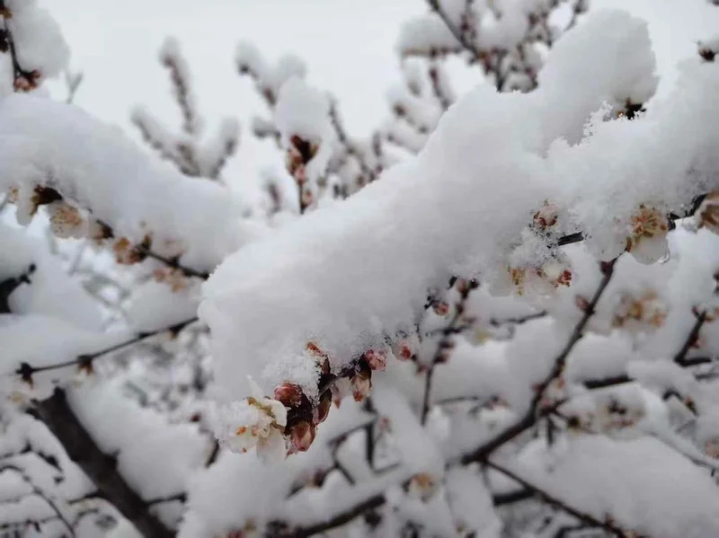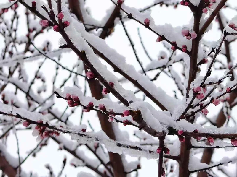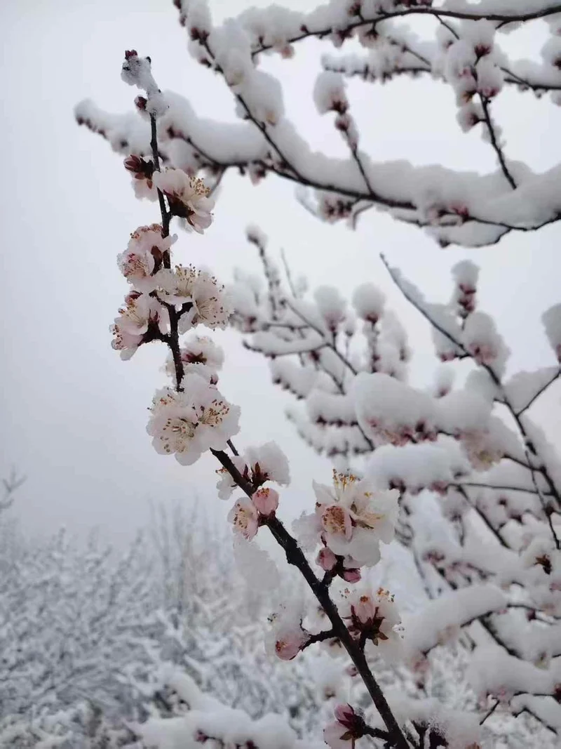 上稍村的桃花雪。九芹跑到山里,拍了许多摄魂夺魄的照片。上班人不能去赴春雪桃花之约,于是看图写诗,权当自己去过。