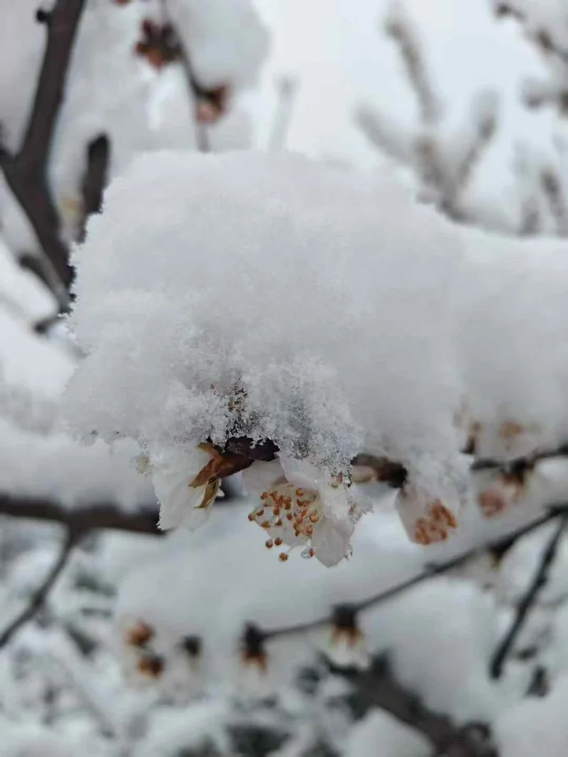 阿立說詩友借友人進山拍攝桃花雪作詩並和之。紐約大雪壓枝,窗外門前比比皆是。然偏少梅花亦無桃花。奈何!唯雪花可當凌霄花。