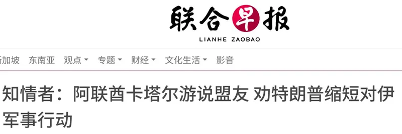 实际上,据彭博社爆料,阿联酋和卡塔尔正私下游说盟友,希望结成一个联盟,劝特朗普尽快停止军事行动。也就是说伊朗这一把赌赢了。