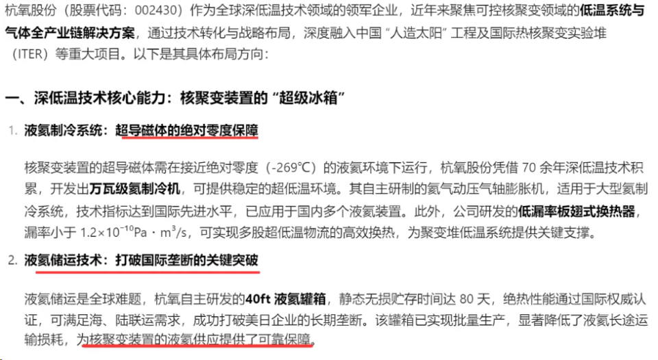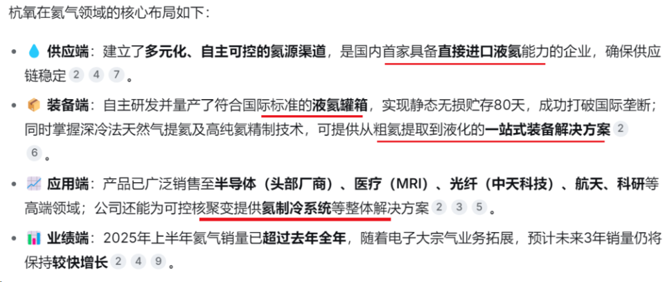 杭氧股份(002430)不仅有氦气业务,而且已经构建了覆盖“制取-储运-销售-应用”的全产业链能力。与蜀道装备侧重装备不同,杭氧更像一个打通了上下游的氦气综合服务商。