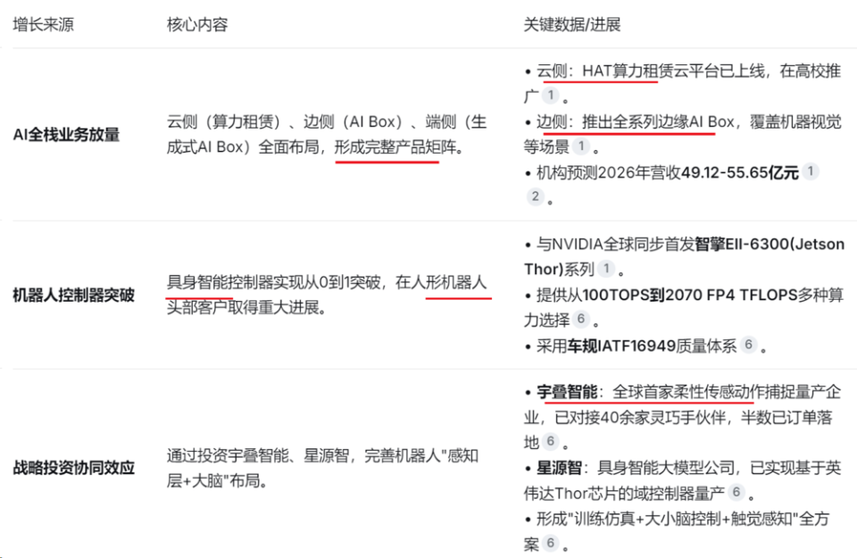 智微智能2026年的业绩增长将主要来自AI算力业务的全面爆发、机器人控制器的商业化落地、以及围绕AI产业链的战略投资协同。