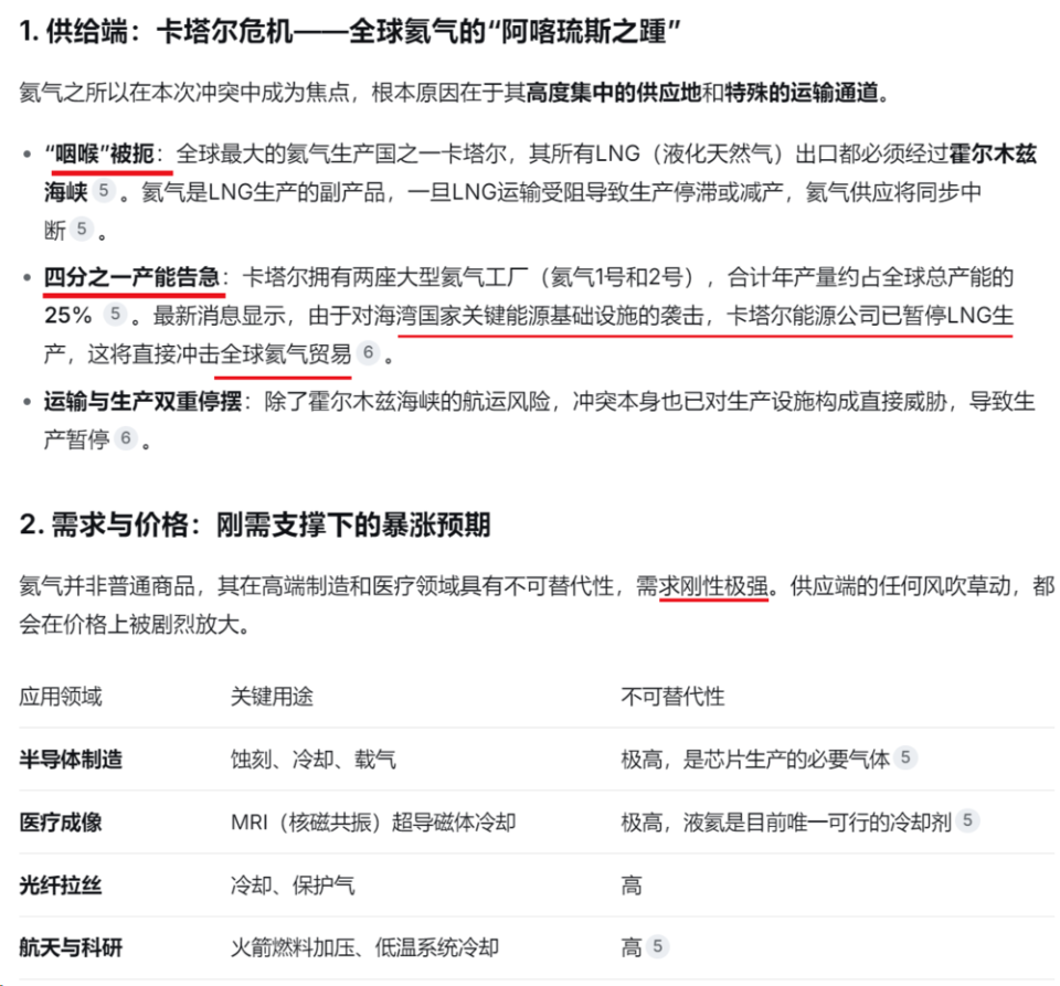 此次冲突对氦气的核心影响可以概括为:卡塔尔氦气供应命悬一线,全球四分之一产能面临中断风险,价格预期将被彻底点燃。