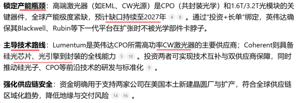 英伟达向Lumentum和Coherent各投资20亿美元(合计40亿美元),并附带数十亿美元的长期采购承诺与产能优先权,是其在AI算力竞赛中一次关键的战略卡位。这并非单纯的财务投资,而是为确保下一代AI基础设施——尤其是光互连(Optical Interconnect)——的核心供应链安全与技术主导权。