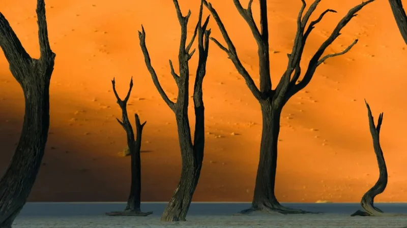 我们还会深入死亡谷(Dead Vlei),在干涸的白色黏土洼地上,拍摄那些枯死了900年却依然屹立不倒的骆驼刺树。黑树、白地、红沙、蓝天。极简,却极震撼。