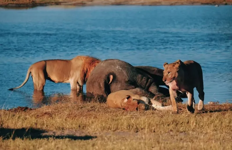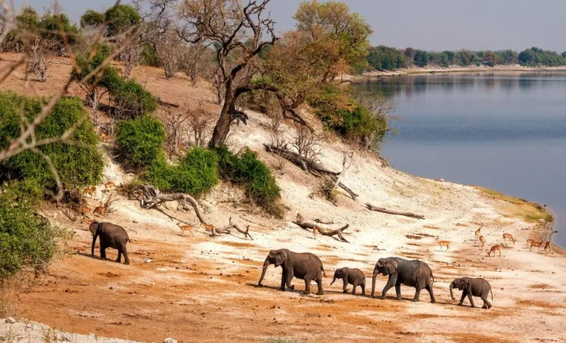 乔贝以卡拉哈里大象闻名,它们是现存体型最大的非洲象亚种,但象牙通常较短且脆(因为土壤缺钙)。在乔贝河边,你经常能看到数百头大象排队过河、泥浴、嬉戏的壮观场面。