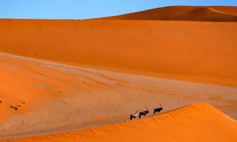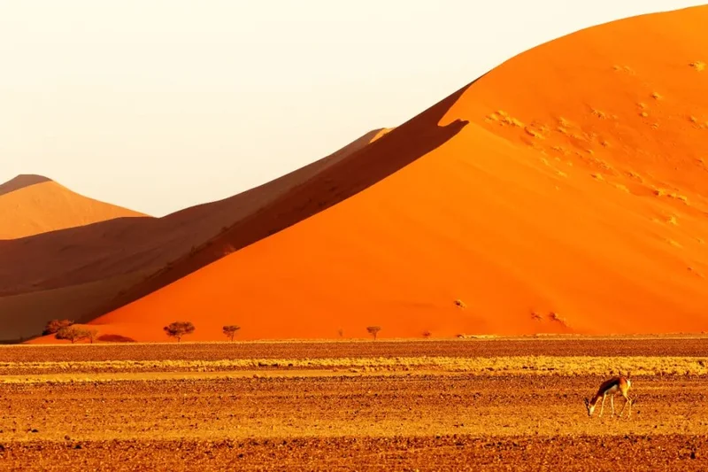 索苏斯维利是摄影人心中的红沙漠圣地,这里有全球最古老的沙漠、最高的沙丘,还有全球唯一的红色沙海,其中45号沙丘(因距离公园入口45公里得名)形若埃及金字塔,曲线优美,常登上地理杂志封面,最高沙丘Big Daddy高达325米,是拍摄沙漠光影的绝佳点位。