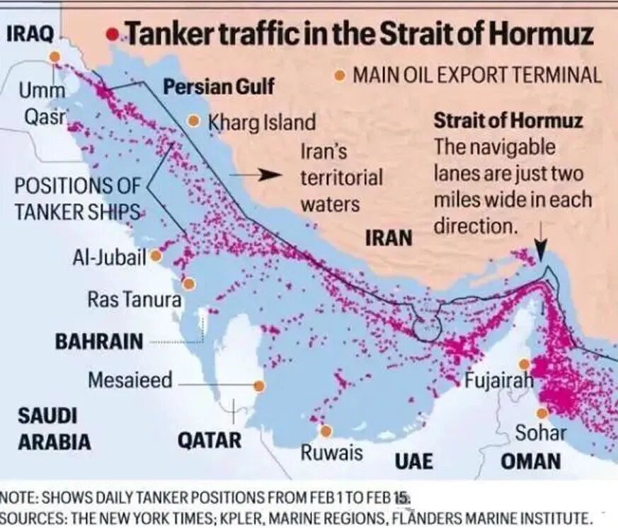 2月28日晚,德黑兰宣布关闭霍尔木兹海峡,禁止任何船只通行。