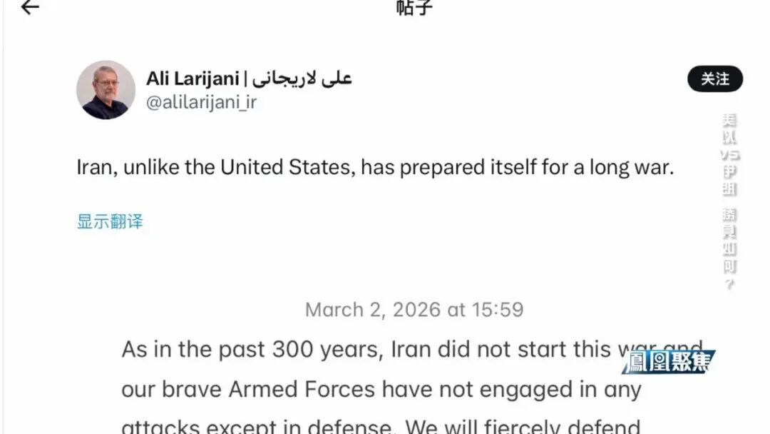 伊朗国家安全委员会主席阿里·拉里贾尼表示,伊朗已准备好打持久战。
