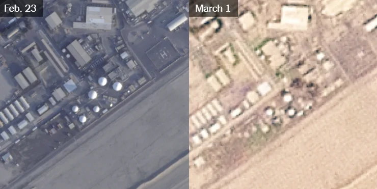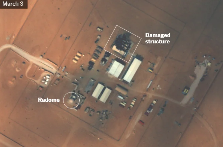 《纽约时报》称,卫星图像显示,位于科威特的美军阿里夫詹营的雷达设施遭破坏