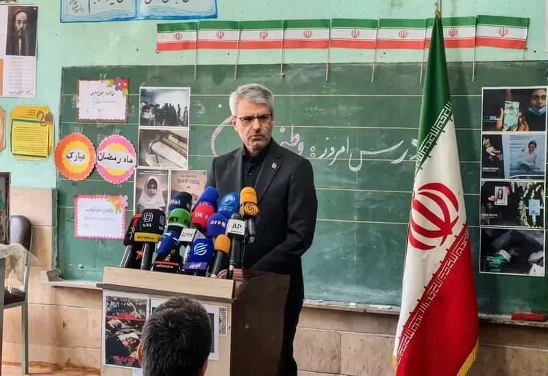 此前一天,伊朗外交部发言人巴加埃在这所遇袭小学召开了发布会。