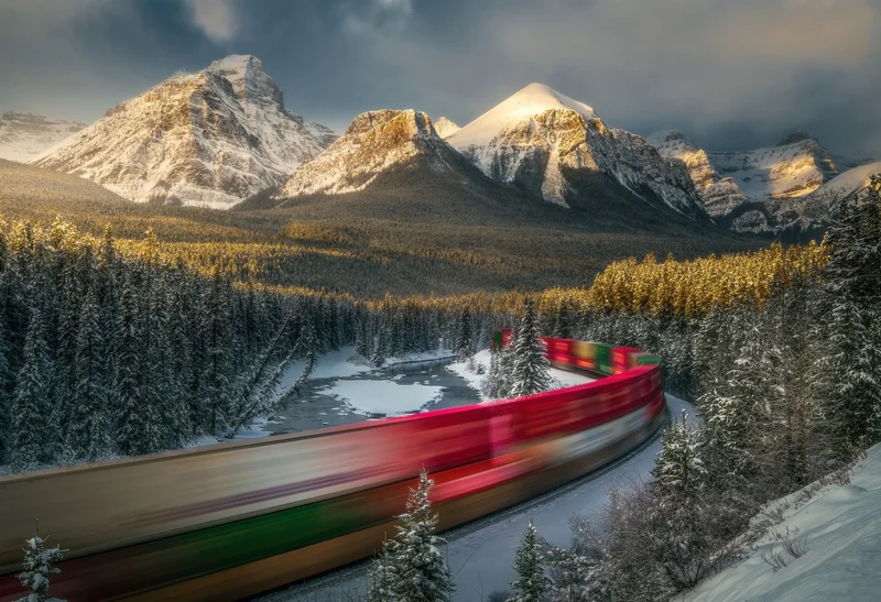 拍摄好的照片,不只是技巧,更是需要运气,而运气的取得则需要时间。 冬季,雪后,黄昏,云,红色双层列车。