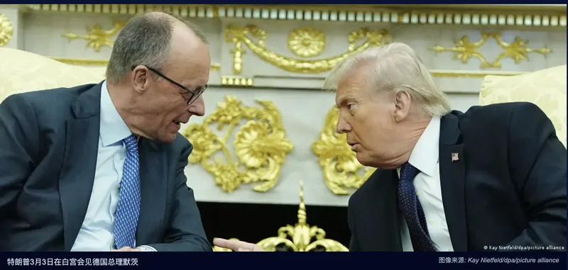 特朗普这是在和他最喜欢的欧洲领导人聊天吗?在白宫椭圆形办公室,特朗普对来访的德国总理默茨(基民盟)赞不绝口,称他是一位“成功人士”、一名优秀的领导人。这和世界各地其他政治领导人在白宫的经历迥然不同。去年年中默茨就任后首次访美时也是这样的画风。特朗普滔滔不绝,大放厥词,经常跑题,默茨则认真倾听,偶尔提出一些小小的观点。这是默茨一直坚持的策略。他试图在闭门会议中解决一些棘手的问题。特朗普不要求德国派军队到中东德国总理的访美计划早已敲定,但由于上周末美国和以色列对伊朗发动袭击,此次访问变得更为重要。默茨在美以军事行动后在柏林表示,德国支持其伙伴以色列和美国,并谴责伊朗对以色列和海湾地区众多目标的袭击。不过他也表示,就国际法来看,德国陷入“两难境地”。