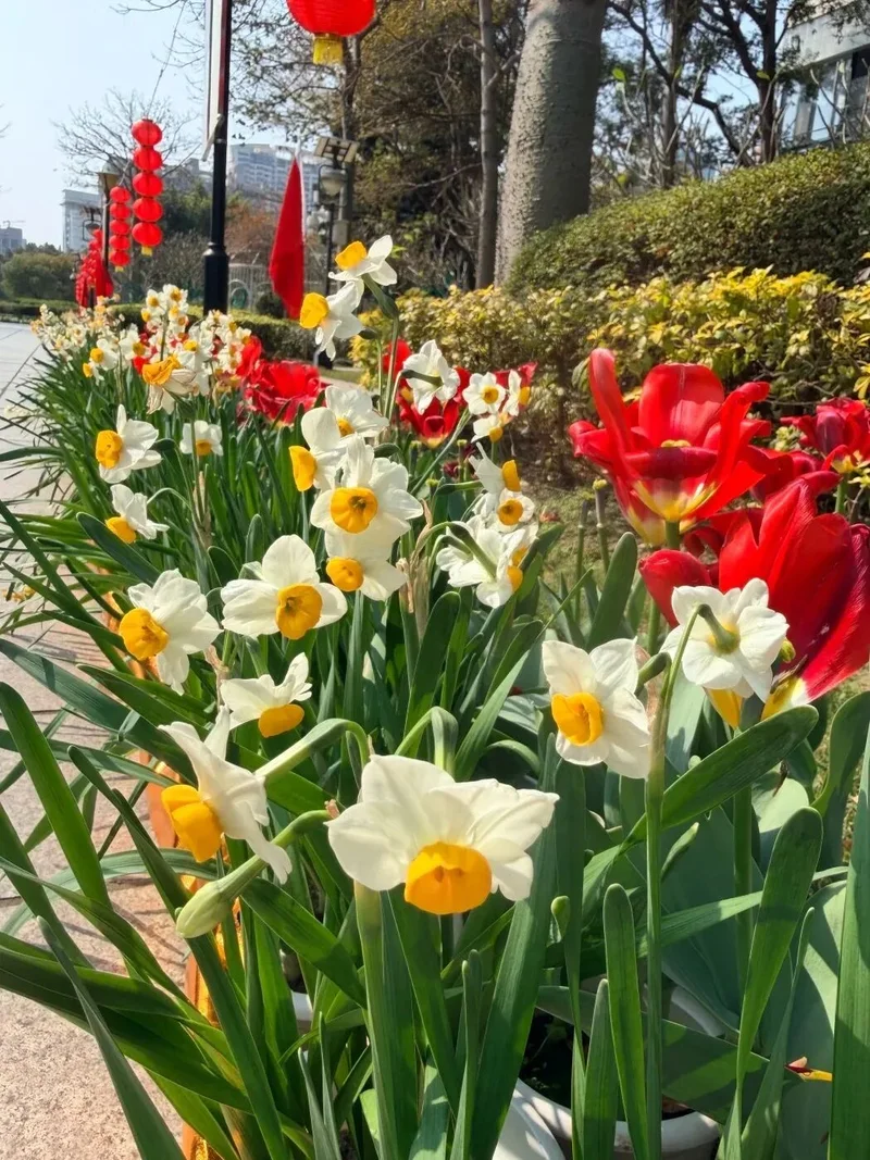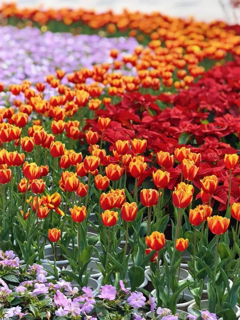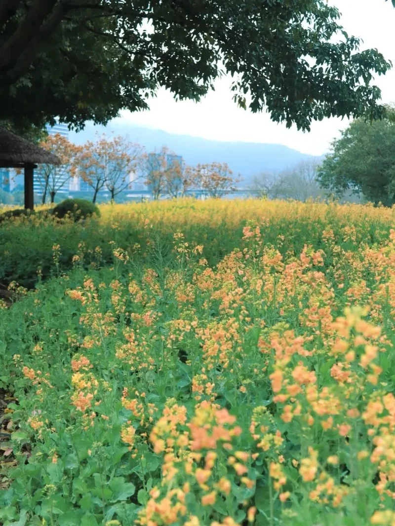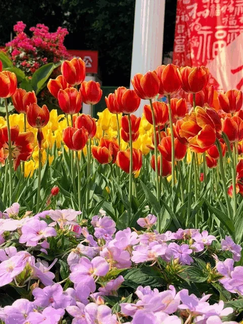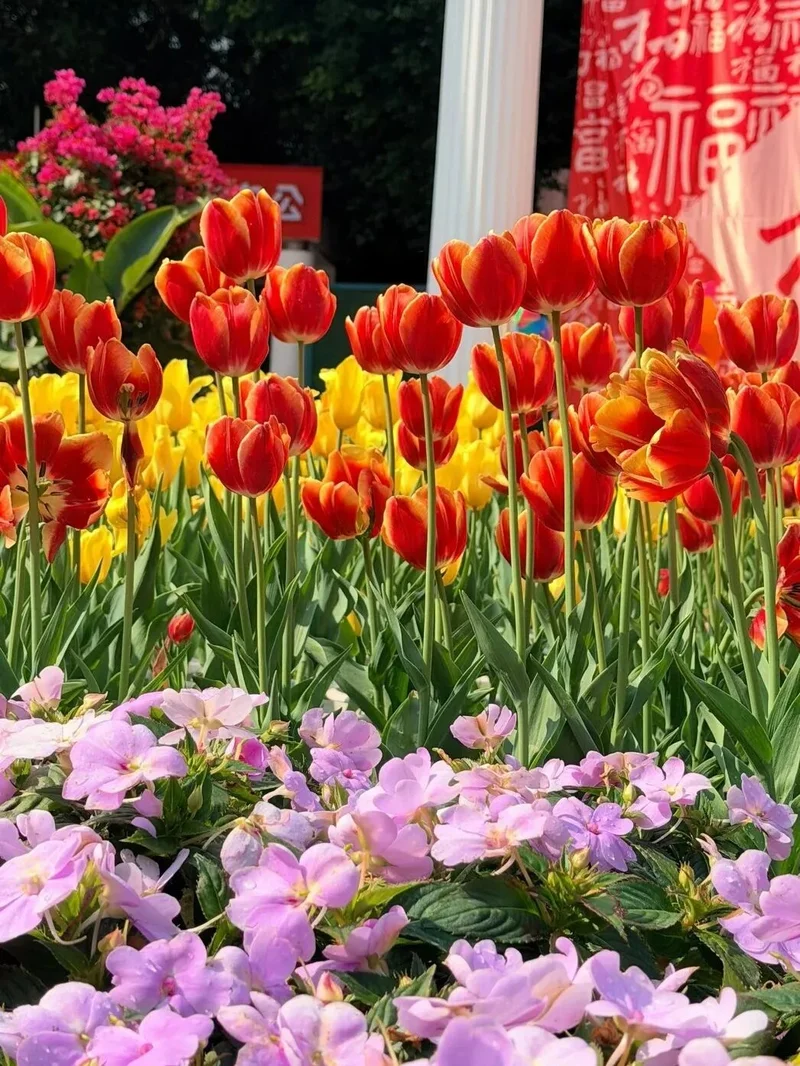 福州花海公园这次配色~~鹅黄、奶白、粉紫、橙红.....层层叠叠的色块沿着江岸蜿蜒铺展,花瓣透出蜜糖般的半透明质感,逆光看过去连纤细的花蕊都沾着细碎金粉,熠熠生辉。