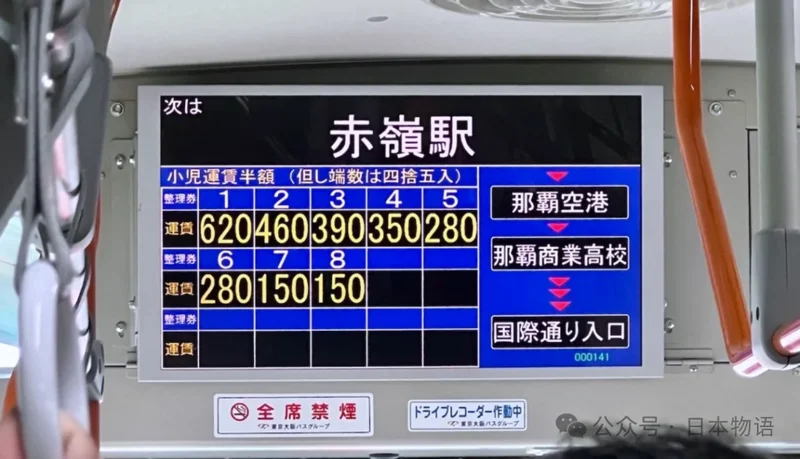 但在很多地方城市,包括冲绳,公交普遍采用的是区间计费:后门上车,前门下车,下车时按坐了多少站再付钱。如果是现金乘车,上车时还要拿一张“整理券”,等到下车时,再根据车厢前方电子屏显示的金额,把整理券和对应的钱一起投入投币箱。