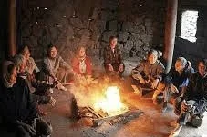 长辈们吃完晚饭在门前门角避风处,男男女女几个人围一堆烤火取暖,东拉西扯讲故事闲聊,小孩都爱走来乘热闹听故事,要来乘热闹的必须带些柴草树枝來。小孩都很自觉到处捡树枝烂板总之能烧就成。在火堆里有烤紅薯的、有烤芋头的,农村人过去冬天没有地方去,只能烤火讲故事了,我老家冬天就是这样打发时间的。