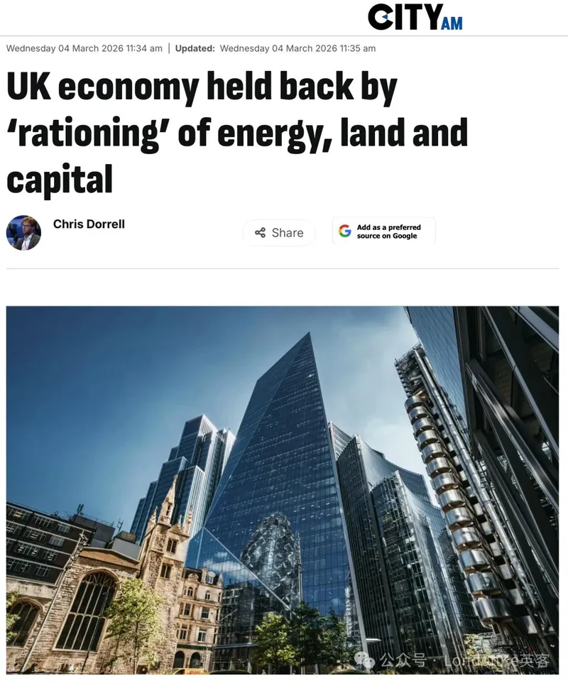 他认为,作为关键生产要素,英国的能源、土地和资本多年来面临着一系列相当于行政配给的环境,这导致了英国经济增长放缓、生活水平下降以及边际税率上升。