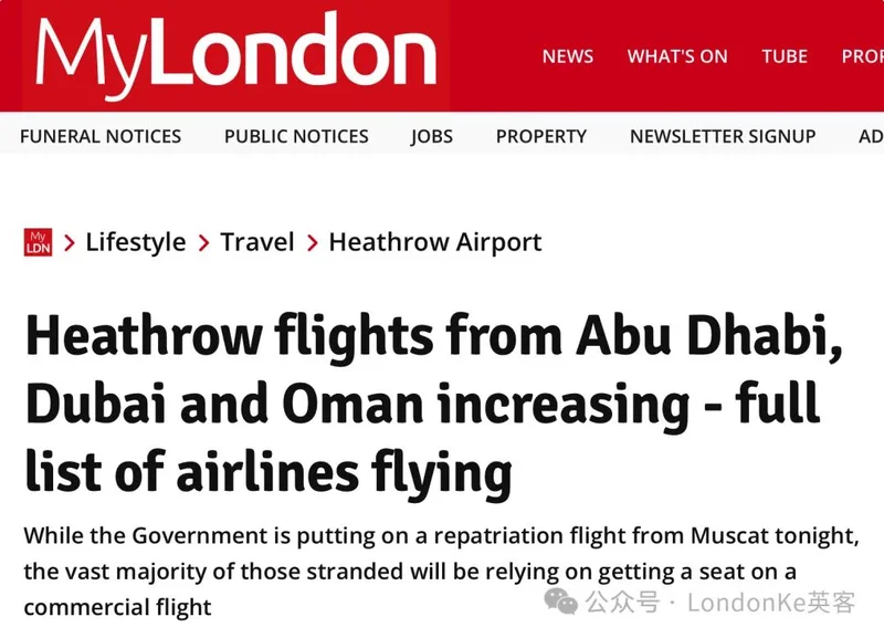 与此同时,英媒报道了另外一则对身在中东地区的英国民众的好消息——从阿布扎比、迪拜和阿曼起飞,飞往希思罗机场的商业航班正在逐步增加。3月3日,已经有1000多名英国公民成功通过商业航线从阿联酋返回英国。