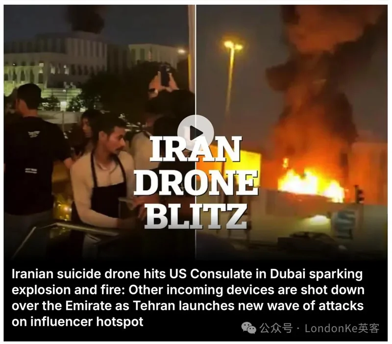 当地时间3月3日,美国驻迪拜领事馆附近发生无人机袭击事件引发的火灾。一架来自伊朗的无人机击中了使馆旁的停车位,在救援队的快速反应下,火势被成功控制,且事件并未造成人员伤亡。