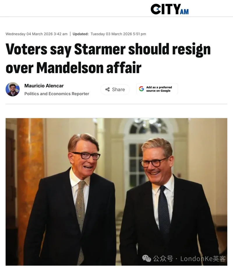 与此同时,City AM和调查机构Freshwater Strategy联合发起的民调发现,超过一半(59%)的英国选民认为,斯塔默应该为任命了爱泼斯坦友人、曼德尔森为驻美大使而主动辞职。另外,65%的受访选民认为,工党存在“肮脏和腐败问题”。