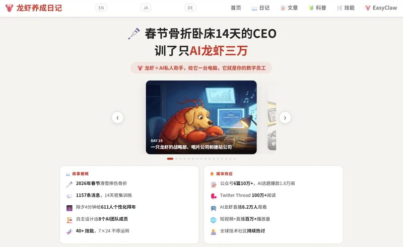 更厉害的是这个名叫三万的龙虾还给自己做了一个网站:只用了24个小时。