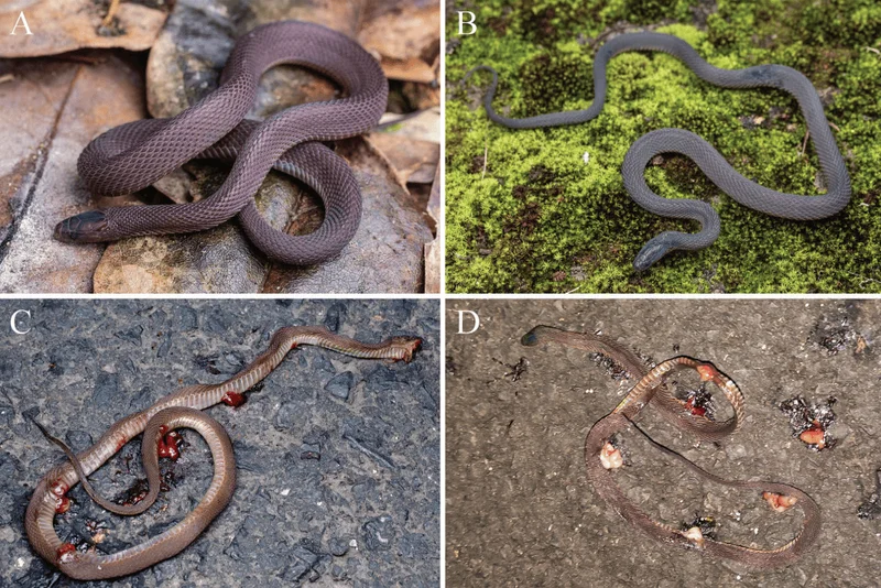 这份坚持,终于在8月17日晚迎来了突破。胡家豪下山途中,一条纤细的蛇突然横穿马路,他立刻靠近观察——这正是他苦苦寻觅的目标物种!这条成年雌性蛇体长30余厘米,通体褐棕色,腹部呈浅褐色,特征与此前发现的残缺尸体高度吻合。后来这也成了该物种的正模标本。