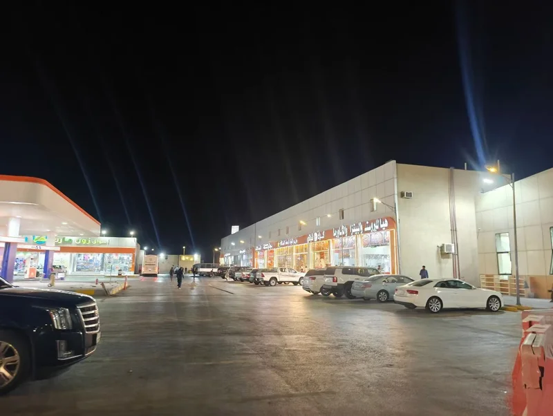 晚上的停车场景象。“第一段是卡塔尔境内,第二段是沙特境内,中间还涉及过关。”周宽回忆称,司机将车上乘客送至海关,但卡塔尔海关与沙特海关中间有5公里不允许过路,需要有一个同时具备两国签证的担保人把他们带过这5公里。
