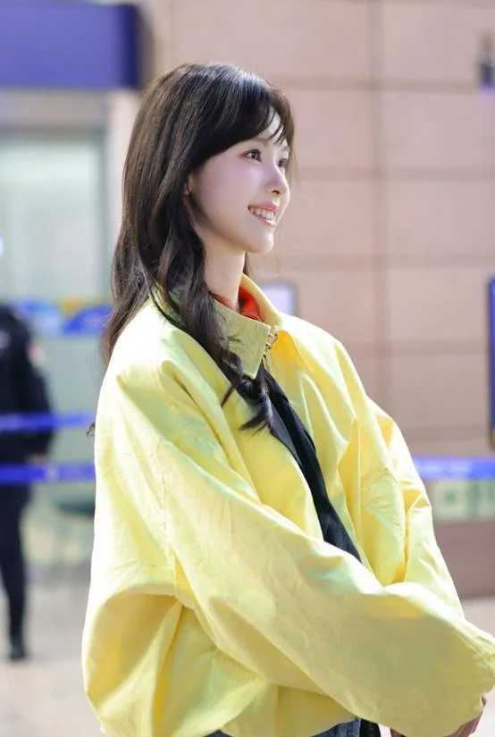 机场出发图看起来太嫩了,长卷发、空气刘海的造型充满少女感,脸部满满的胶原蛋白,完全看不出陈都灵已经32岁。