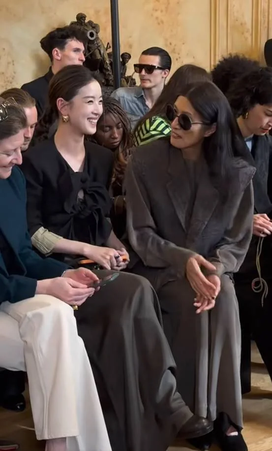更让其他人难以做到的是章泽天在这种场合的松弛感,她坐在秀场头排与身旁纪梵希家族的中国儿媳,也是超模黄现喜热聊天,笑容洋溢的状态尽显高情商的社交能力。