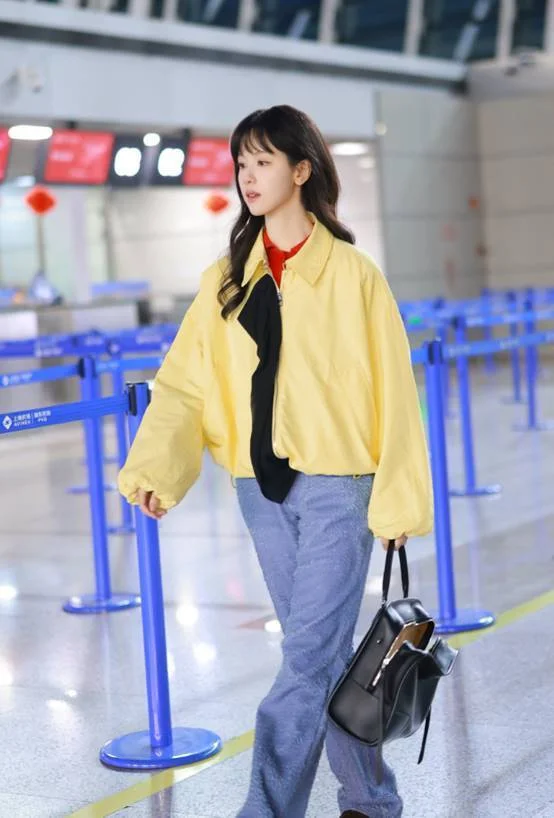 不过,她这套造型的完成度也是依赖她的颜值,鹅黄色夹克、大红色毛衣,搭配一条蓝色牛仔裤,鲜亮的颜色充满青春活力。但“番茄炒蛋”的配色的确很难驾驭,还是期待一下陈都灵的秀场造型吧。