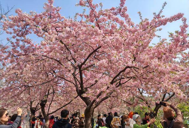 知名的就有武汉东湖樱花园、武汉大学樱花大道、无锡鼋头渚、贵州平坝樱花园、南京鸡鸣寺等,花开如云霞。