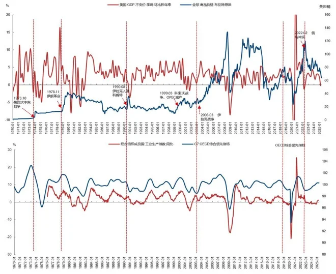 然而,历史经验也显示,地缘风险溢价回落后,油价往往重新反映需求基本面(1990,2018,2022)。这里重点跟踪的数据是OECD综合领先指标、PMI就业、消费与进口、财政与利率。